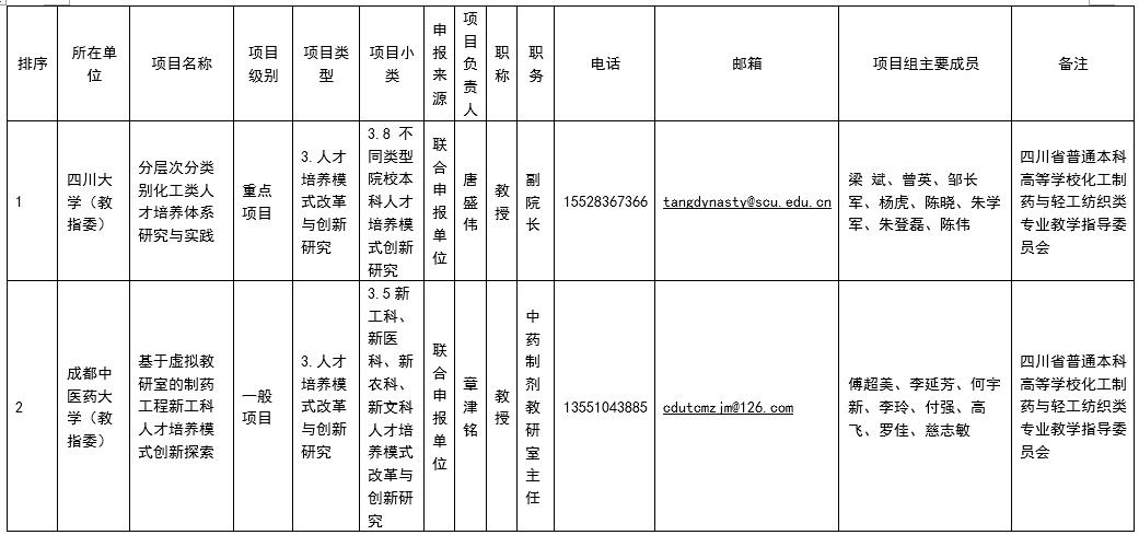 公示期间,如对申报项目有异议,请联系四川省普通本科高等学校化工制药与轻工纺织类专业教学指导委员会秘书处。