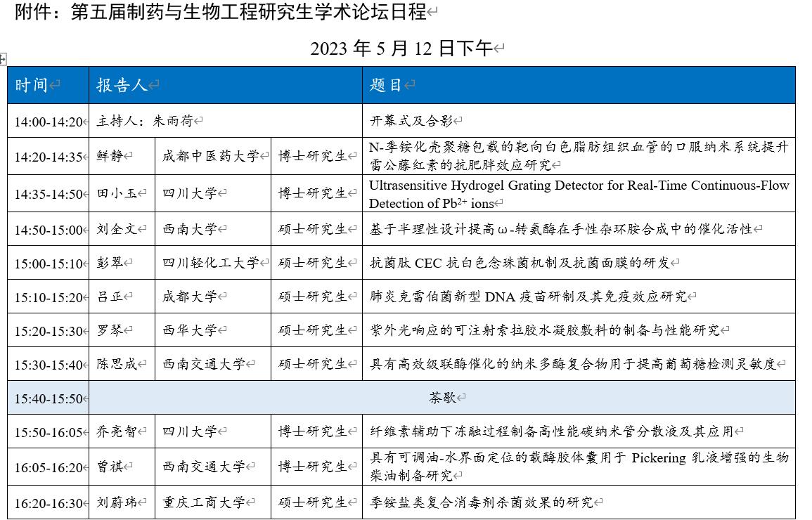 附件:第五届制药与生物工程研究生学术论坛日程