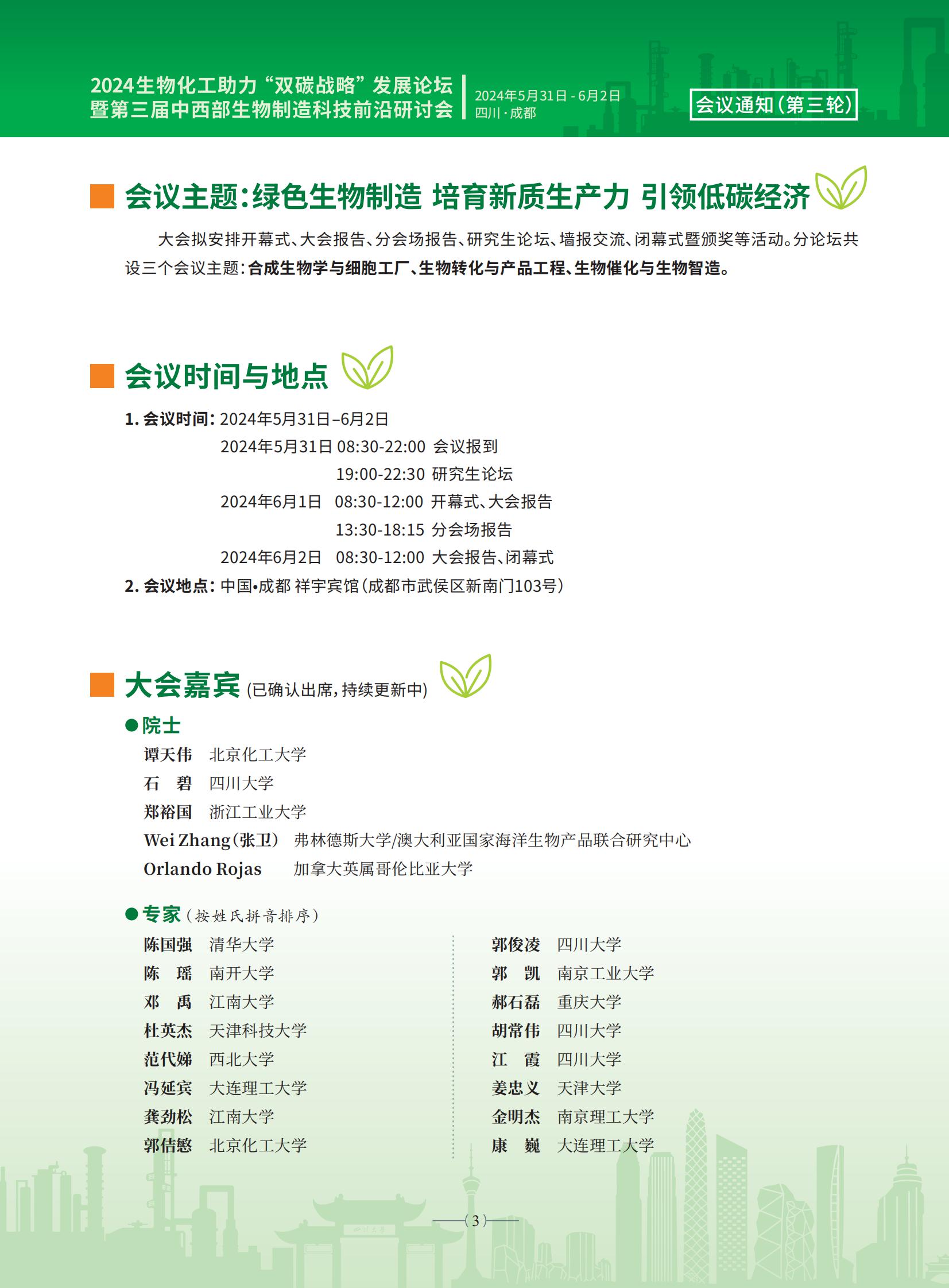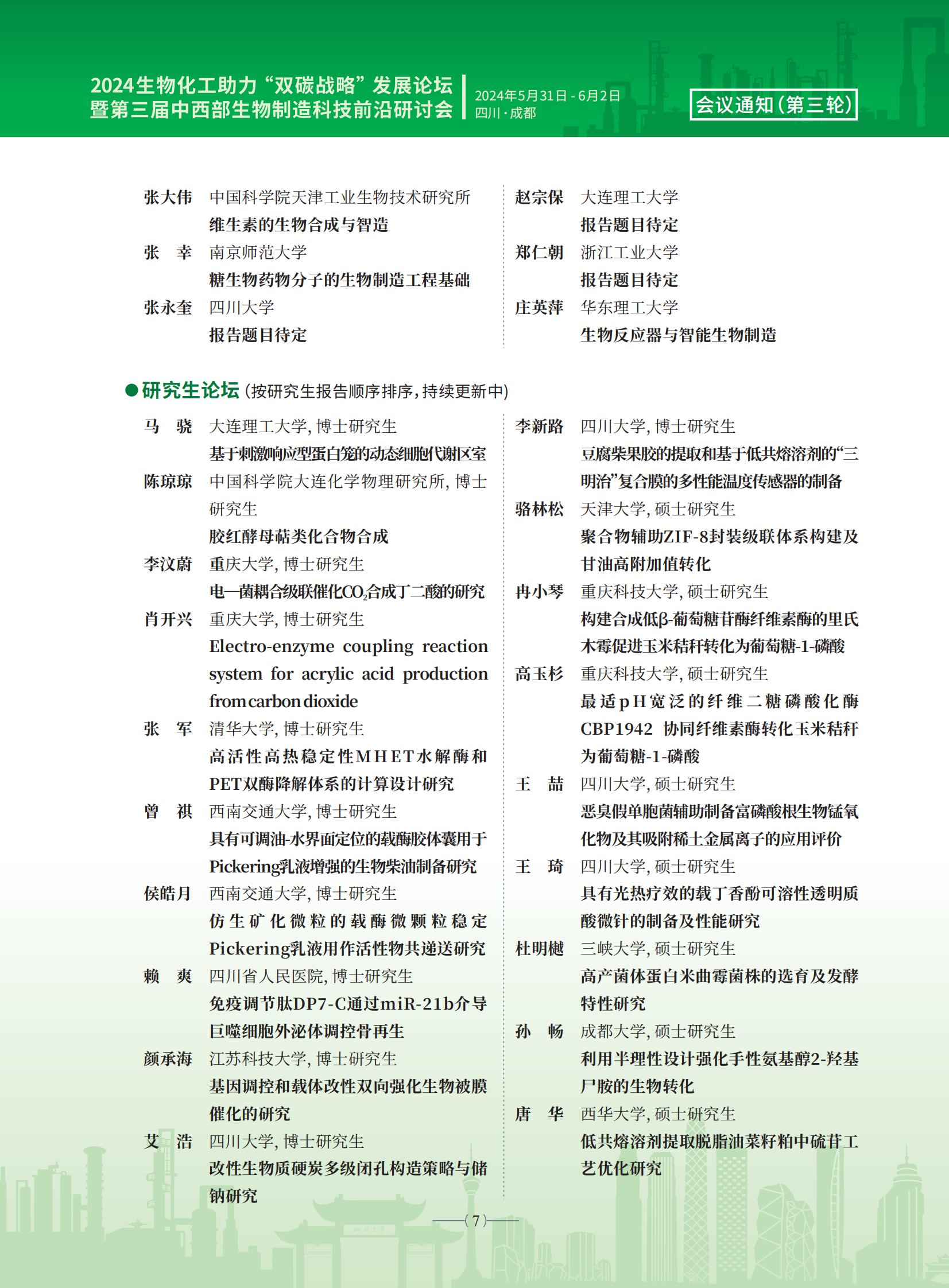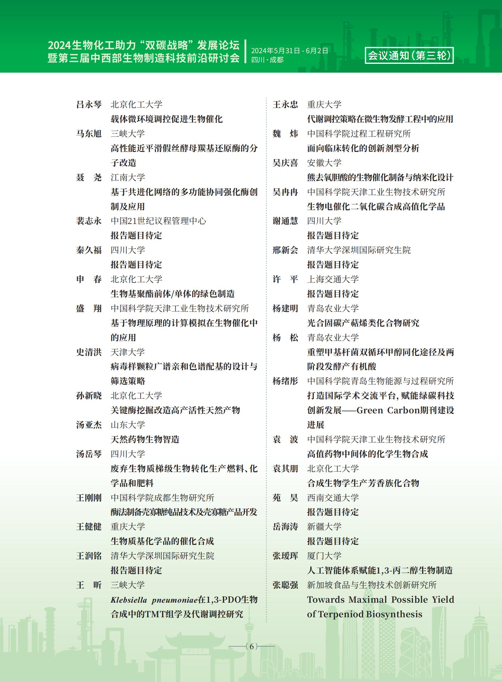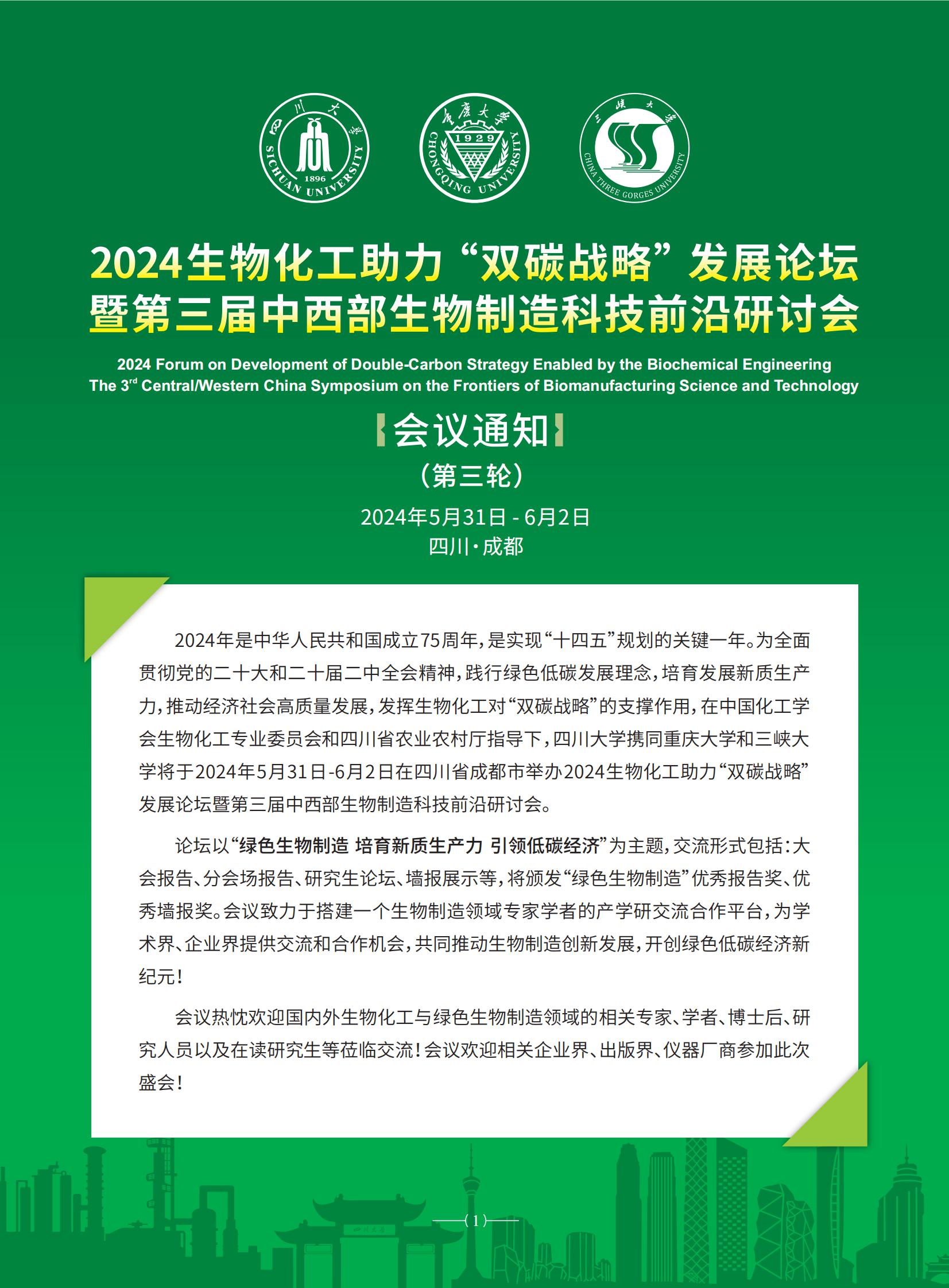 上一条:“湖北宜化-四川大学联合创新研究中心”2024年开放课题申请指南 下一条:2024生物化工助力“双碳战略”发展论坛暨第三届中西部生物制造科技前沿研讨会(第二轮通知)