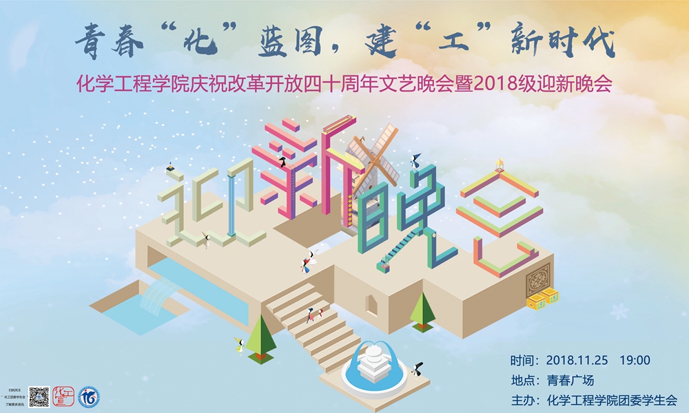 青春“化”蓝图,建“工”新时代——化学工程学院2018级迎新晚会将于2018年11月25日19:00在江安校区青春广场举行,诚邀全院师生莅临!