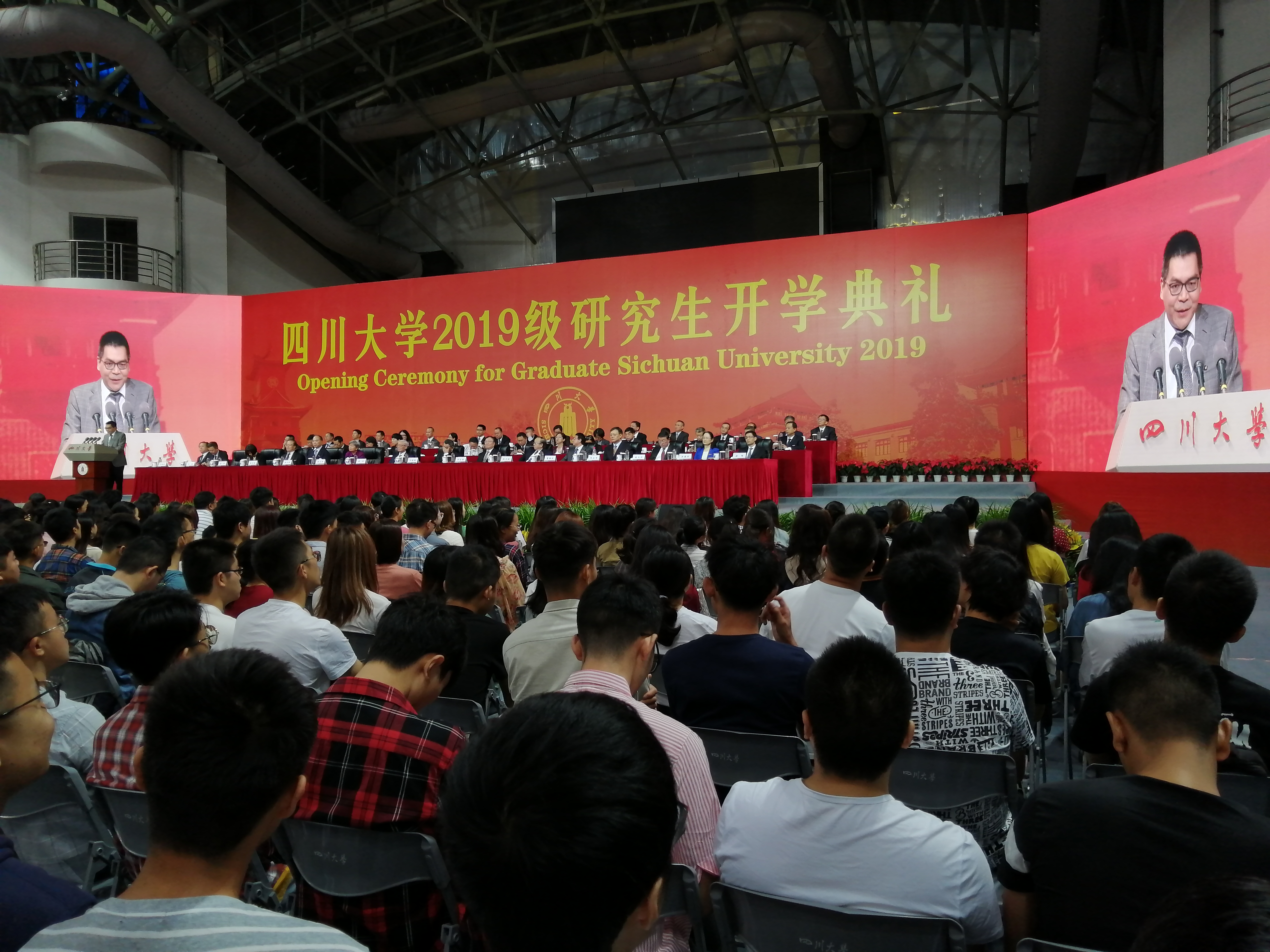 9月5日上午,四川大学2019级研究生开学典礼隆重举行,来自全国各地的研究生新生齐聚望江校区体育馆,在师长和亲友们的见证下,正式开启自己的川大学术人生。学院杰出校友、中国成达工程有限公司党委书记、董事长刘一横作为优秀校友代表应邀在开学典礼上发言。