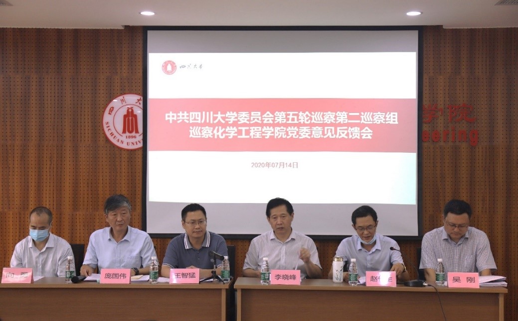 7月14日,学校党委第五轮巡察第二巡察组巡察化学工程学院党委情况反馈会在望江校区正行楼313报告厅举行。第二巡察组组长李晓峰,副组长向勇、吴刚向化学工程学院党政主要负责人反馈巡察情况后,李晓峰同志代表巡察组进行了大会反馈。校党委组织部常务副部长、党委巡察办副主任王智猛参加会议并提出巡察整改工作要求。学院党委书记庞国伟作表态发言,院长赵长生主持会议。
