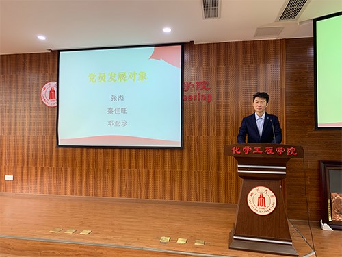 化学工程学院研究生膜科学与功能材料实验室党支部于2020年9月23日于化工楼313会议室召开了支部大会。本次大会由文国宇主持,主要讨论和审议接收发展对象张杰、邓亚珍和秦佳旺同志为预备党员的相关事宜。