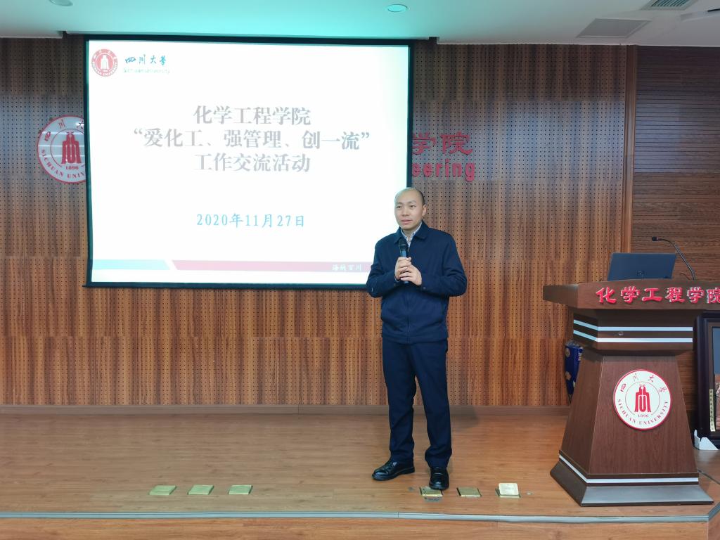 2020年11月27日,化学工程学院在望江校区313会议室组织开展“爱化工、强管理、创一流”主题交流活动。学院全体行政管理人员、实验教辅人员和近三年进院工作的部分教职工参加活动。
