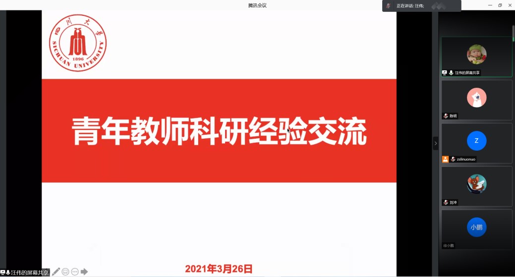 在青年教师科研经验交流环节中,汪伟老师分享了在科研工作方面的宝贵经验,重点强调了我们的科学研究应从个人兴趣与国家需求结合,青年教师应在基础研究或工业应用上做些特色的工作。接着,王辛龙老师分享了自己的科研和工作经验,提出科研方向的选择十分重要,但更重要的是坚持,一旦选定好了方向,就必须十年磨一剑般坚持下去。