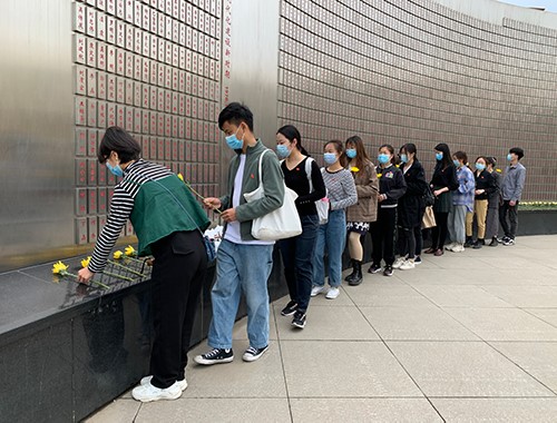 首先,支部党员在田小玉和王坡同志的带领下整理仪容仪表后整齐的进入成都市烈士陵园,在镌刻着“人民英雄永垂不朽”几个大字的烈士英雄纪念碑前奏国歌,全体默哀一分钟,随后支部成员们依次向烈士献花。
