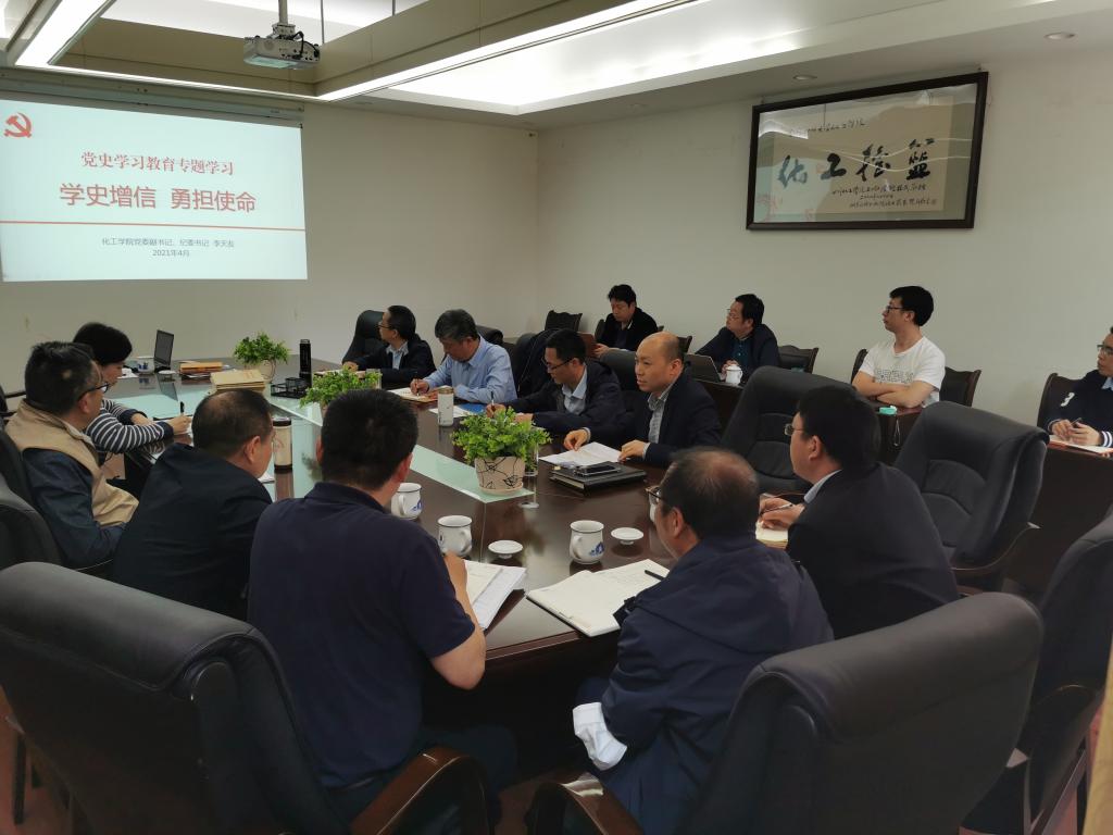 为落实学校关于党史学习教育的安排部署,2021年4月26日上午,化学工程学院在望江校区正行楼235会议室组织召开党委理论中心组学习(扩大)会。学院全体班子成员、工会主席、专职组织员、党委委员、纪委委员、各系(基地、中心)负责人和科级干部等参加学习会。会议由学院党委书记庞国伟主持。