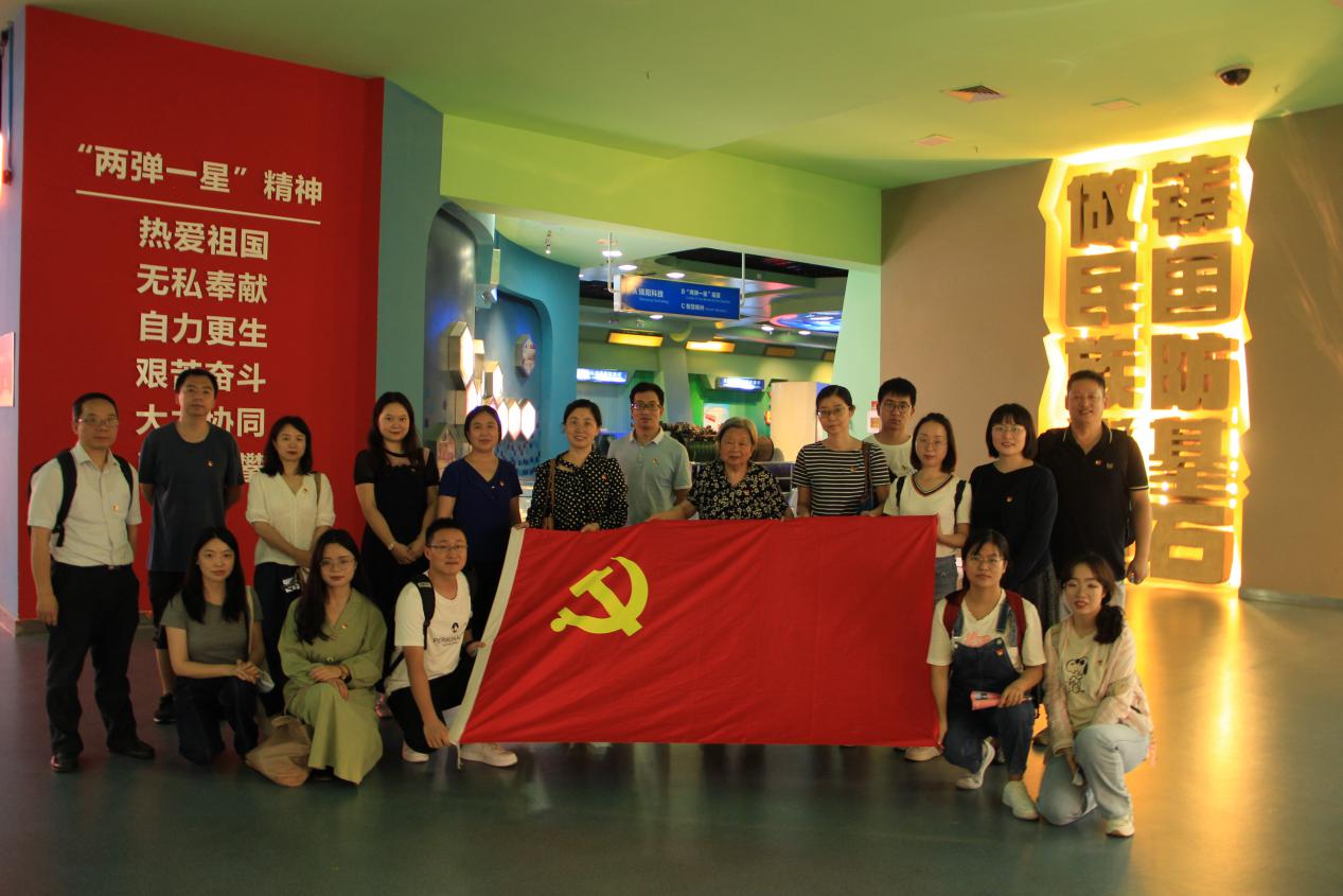 7个党支部的党员同志们在科技馆讲解员的带领下,参观了这座国内唯一的“两弹一星”主题科技馆。师生党员们认真观看了导弹展区、航空航天展区、卫星与信息展区、核武器与核科技展区、卫星与空间信息技术展区的展览,通过实物、图片、视频等详细了解了我国航空航天、核武器的发展历程。在科技馆三楼“两弹一星”功勋人物展区,钱学森、邓稼先、郭永怀、于敏、孙家栋、任新民等“两弹一星”元勋在艰苦复杂条件下,做民族脊梁、献身“两弹一星”事业的英雄事迹和所形成的“热爱祖国、无私奉献,自力更生、艰苦奋斗,大力协同、勇于登攀”的“两弹一星”精神深深地感染和激励着现场参观的师生党员们。