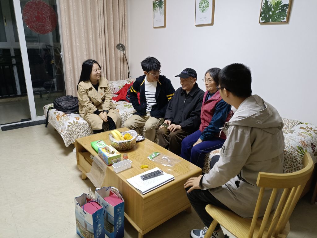 2021年10月15日星期五晚上7点,四川大学化学工程学院本科社区党支部的四位学生党员前往文星花园方善如、董宗玉伉俪家中探望,代表学院在重阳佳节给予老教师们关心和温暖,也代表本科社区党支部给老师们送去真挚的祝福;同时,同学们也在生活、学习和就业方面和老师们进行了积极的交流,从老师们丰富的阅历和知识中学习。