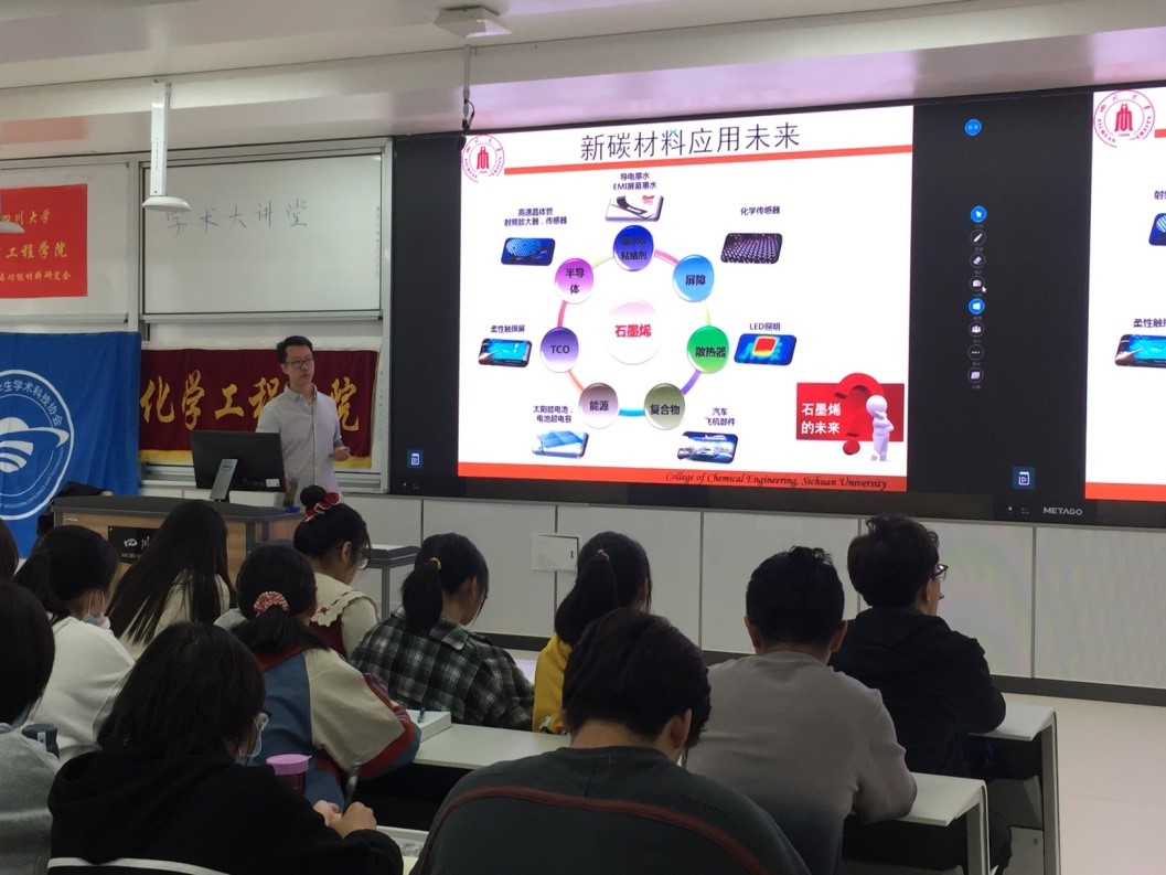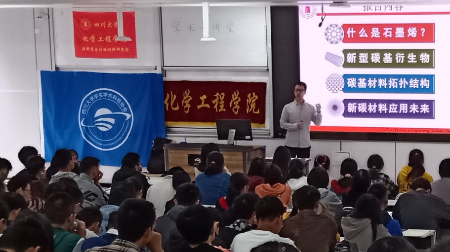 2021年10月10日上午,在四川大学江安校区综合楼C座407教室,四川大学化学工程学院顺利开展“庆祝中国共产党成立100周年系列活动——化工学术大讲堂”讲座。本次活动邀请化学工程学院吉俊懿教授,为同学们带来主题为“新型碳材料的前世今生与应用未来”的精彩讲座,帮助同学们更好地理解碳材料在未来新型产业发展的目标与前景。本次活动由“膜科学与功能材料”研究会主办,化学工程学院团委学生会学术科技部承办,2021级全体本科生以及部分高年级本科生在内的近400人参与。