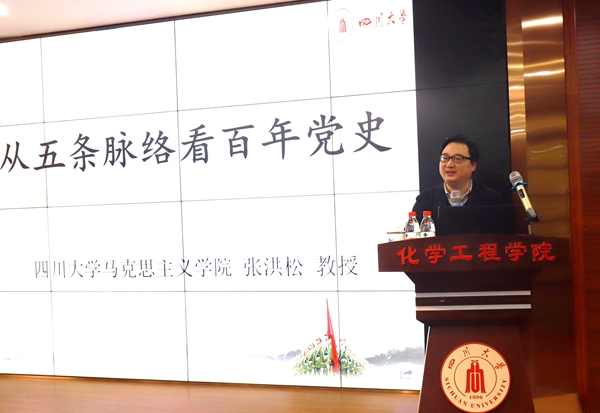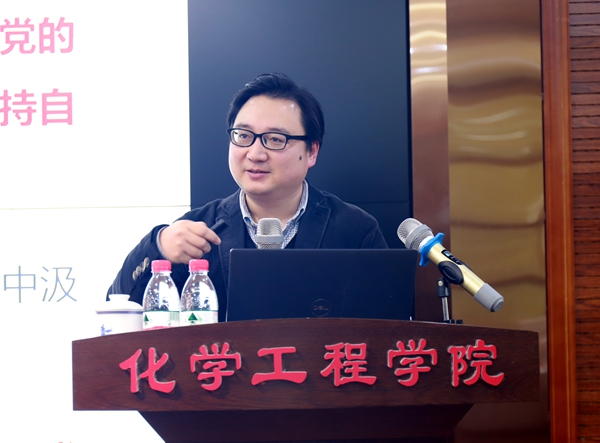 2021年12月17日下午,化学工程学院在望江校区正行楼(原西二教)313报告厅组织召开党的十九届六中全会精神宣讲报告会。学校十九届六中全会宣讲团成员、校社科处副处长张洪松教授为全院教师开展全会精神宣讲。报告会由学院党委书记庞国伟主持,学院全体领导班子成员、专职组织员、工会主席、全体教职工和离退休教师代表参加会议。