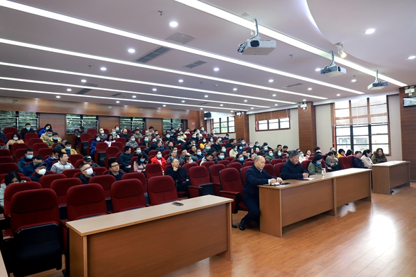 张洪松教授的报告内容丰富、解读详实、深入浅出,让大家对十九届六中全会的《决议》和百年党史有了更清晰的了解。全院教师要以党的十九届六中全会精神为指导从百年党史中汲取智慧和力量,更加坚定地增强“四个意识”、坚定“四个自信”,做到“两个维护”,以优异成绩迎接党的二十大。
