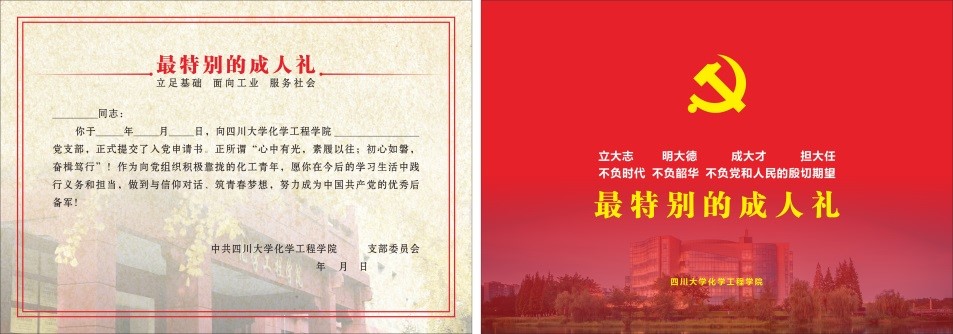 作为化工青年,我们的十八岁,都有一个共同的追求——“提交入党申请书”。“清澈的爱,只为中国。”这句由“00后”戍边烈士陈祥榕曾写下的令无数人为之泪目的深情表白,他的18岁是如此的绚烂多彩!是如此的炽热坚韧!伴随着朴实又温情的话语,我们同教导员李川娜老师和刘蓉生老师一起,回顾着老教师党员他们18岁艰苦奋斗的知青岁月,在与国家同甘共苦的岁月中加入中国共产党,这一段经历刻骨铭心,有着无法抹去的记忆久久萦绕于心间。2022年化工青年也迎来了我们自己的18岁,或许刚刚到,或许还未走远。刚满18周岁1天的学习委员陈飖曲,郑重的向本科社区党支部提交了入党申请书,并在活动现场分享到“我的十八岁,是独一无二的十八岁,我想申请入党,永远跟党走。坚韧前行,勇挑重担,在时代的洪流中彰显青春的蓬勃力量;不惧风雨,砥砺前行,在大是大非面前交出时代的合格答卷”。满18周岁2周的班长兼副团支书付学舟,提到“生逢盛世,乃我们之幸;于盛世中奋斗,乃我们之责。我怀着崇高的敬意,郑重地向党组织递交入党申请书,这是我人生历程中十分庄严神圣的事情,我必将用一生践行全心全意为人民服务的宗旨,争取早日加入中国共产党”。满18周岁1个月的班长兼副团支书程甲,谈到“我于2022年4月1日向党组织提交入党申请书,这一天是一个特殊的日子,正好是我的生日,我把提交入党申请书作为送给自己的生日礼物。就在这一天,我在心里种下一颗红色的种子,与信仰对话,逐梦筑梦圆梦,努力成为党的优秀后备军”。随后大家纷纷憧憬并接力述说着自己的18岁“我的十八岁,是奋勇担当的、是朝气蓬勃的、是志愿先行的、是建功立业的,是……”