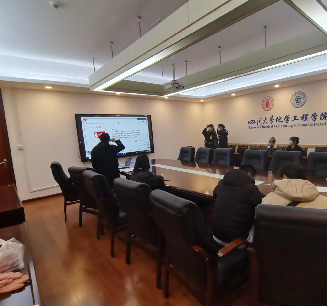 2023年1月6日下午6:00,化学工程学院研究生第二党支部在望江校区化工楼235会议室开展了学习党的二十大精神的活动以及关于是否确定王敏、何帅同志发展为中共预备党员的讨论表决大会。会议由支部宣传委员王增增同志主持。