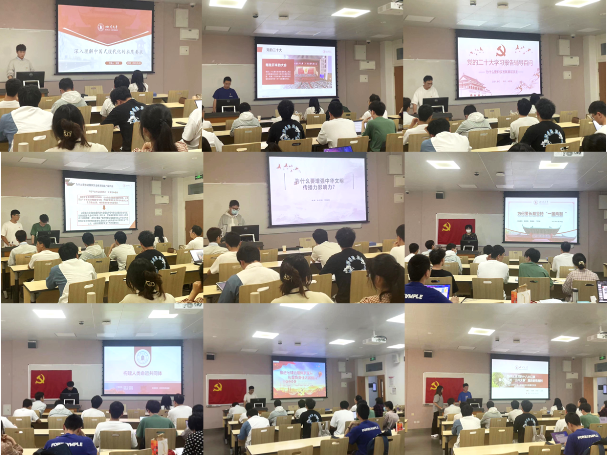 随后,支部学生党员进行了专题学习分享,其中包括《如何理解党的二十大报告提出的“三个务必”》《推进国家安全体系和能力现代化的重要性》《构建人类命运共同体是全世界各国人民前途所在》等重要议题。党员们在分享中深入解读了党的二十大报告对坚持和发展中国特色社会主义的重要性,对全面建设社会主义现代化国家的战略部署,以及对推动构建人类命运共同体的历史使命等诸多方面的深刻论述。通过专题分享,学生党员们对党的二十大报告的核心思想和重要观点有了更深入的理解,并对如何贯彻落实这些要求提出了自己的思考和建议。