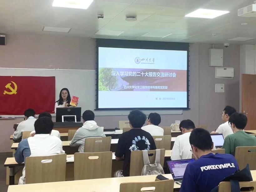 2023年5月26日下午两点,四川大学化学工程学院本科雏鹰党支部在一教A109开展“深入学习党的二十大报告交流研讨会”主题党日活动,活动由支部书记雷金凤主持,参加此次活动的有本科雏鹰党支部30余名学生党员。本次活动主要是支部内学生党员结合党建读物《党的二十大报告学习辅导百问》,深入学习党的二十大报告并展开相关交流研讨。