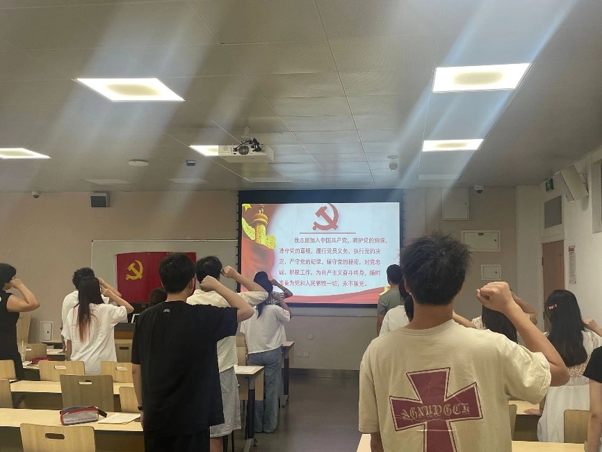 最后,党支部书记雷金凤同志带领所有参会同志重温入党誓词,并对整个会议进行了总结,希望张耘陌等十位同志再接再厉,能够与时俱进坚持学习,不断加强党性修养,提高自身的政治觉悟,在思想上和行动上始终以优秀党员的高标准严格要求自己,充分发挥模范带头与辐射带动作用,努力成为优秀的共产党员。