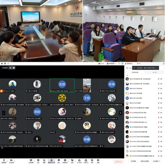 2025年5月9日下午,为弘扬五四精神,展现青年学子的时代担当,四川大学化学工程学院研究生第六党支部、本科社区党支部和本科雏鹰党支部与清华大学化工系化工研三第2党支部、天津大学化工学院2023级硕士生生化第二党支部、南开大学化学学院高分子所第六党支部和化学系无机研究生第一党支部四校四院七支部共同开展了“五四精神,化炼青春”联合主题党日活动。活动采取线上线下相结合的方式,围绕五四精神、青年担当和学术创新展开深入交流。