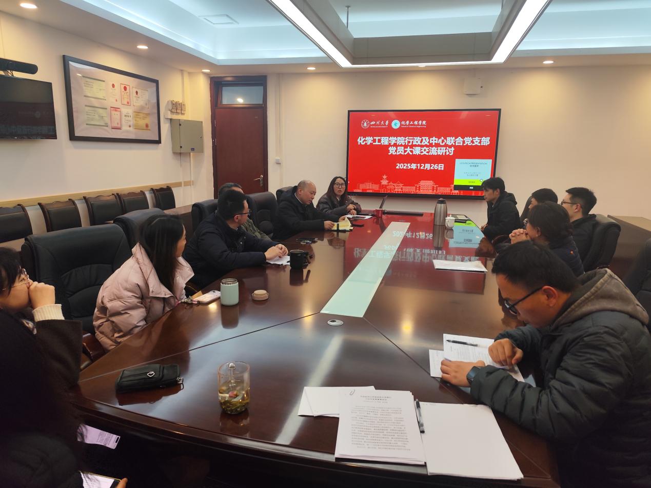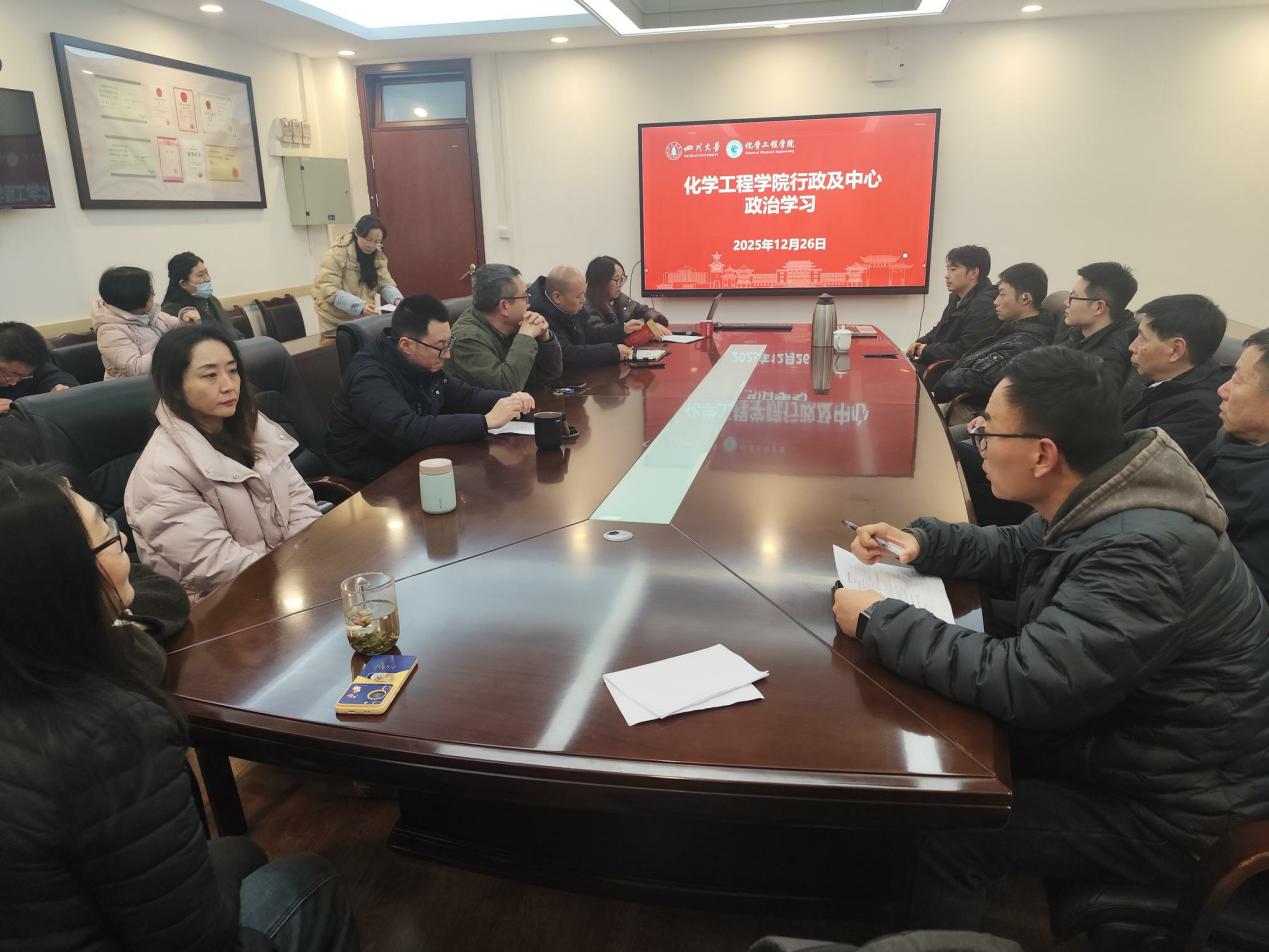 2025年12月26日下午,化学工程学院全体行政老师和工程实验教学中心全体实验技术人员在望江校区化工学院235会议室开展了政治学习和支部学习,并围绕2025年党员基本培训第三次集中大课学习开展了专题交流研讨。本次会议由支部书记高敏同志主持。