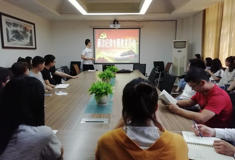 会议首先由文国宇同志以“党员讲党课”的形式展开了相关理论知识的学习。他从廉洁自律规范出发,对“规范”的八条内容及其内在含义做了深刻的分析,并简明扼要地强调了习近平总书记关于《治国理政重要论述》中对党员建设提出的要求,指出党员要坚决反对腐败,在思想、工作和学习中牢牢守住底线,对违纪违法案例要有警醒意识、知敬畏。