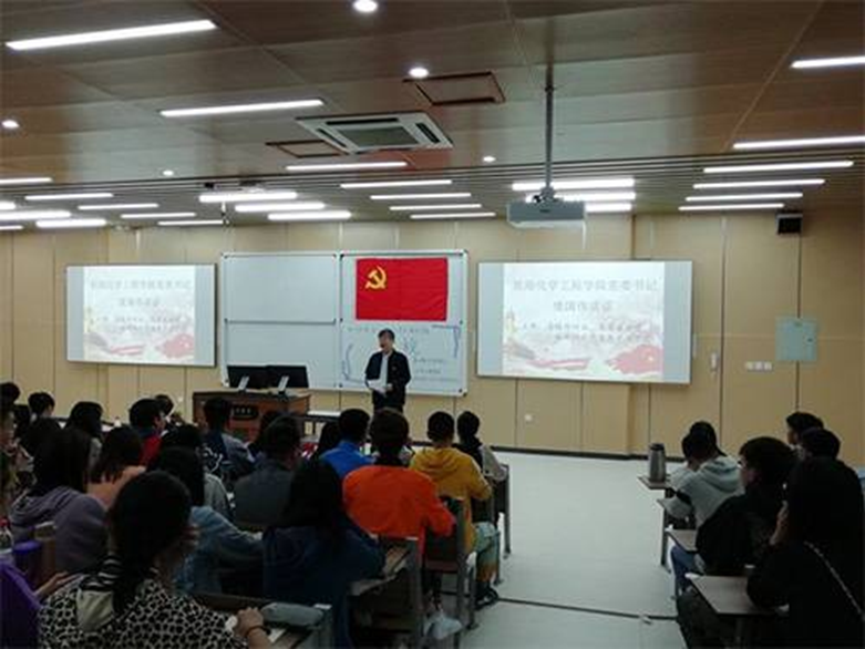 图2.化学工程学院党委书记庞国伟老师进行主题为“与信仰对话,筑青春梦想,做新时代的优秀学生党员” 的讲话