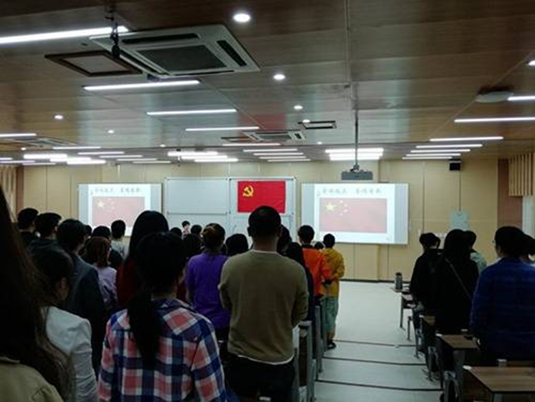 10月19日上午九时整,四院联合党校第147期发展对象培训班开班典礼准时开始。首先进行典礼第一项流程,全体起立奏唱国歌。到会老师和第147期发展对象起立,深情奏唱国歌。接着进行典礼第二项流程,由姜书记介绍与会嘉宾,他们分别是四川大学老领导汪朝清老师、化学工程学院党委书记庞国伟老师、艺术学院党委副书记杨梅老师、化学工程学院党校指导教师李珍珍、建筑与环境学院党校指导教师刘芸、轻工科学与工程学院指导教师王舒灏、艺术学院党校指导教师李莹莹。