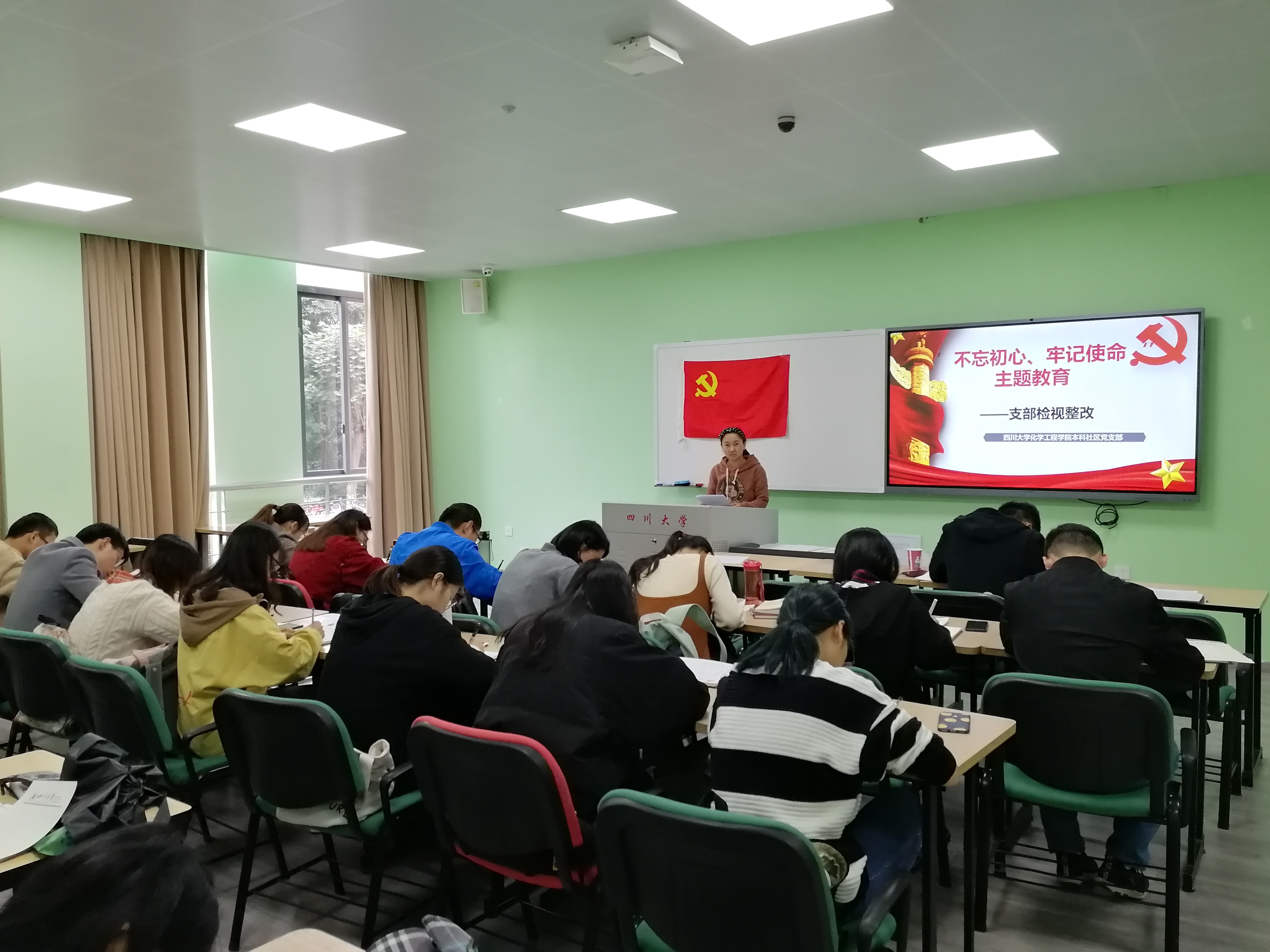 2019年10月25日星期五13:30,化学工程学院本科社区支部在江安校区综合楼B座207教室开展支部检视整改活动。此次党组织生活在各位同志的积极参与下取得了圆满成功。