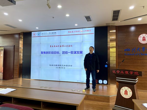 2023年3月3日下午,化学工程学院第五届“双代会”第二次会议暨2023年度工作推进会在望江校区化工楼313会议室胜利召开。学院全体教职工参加了本次会议。会议的主题是“贯彻二十大精神,聚焦新阶段目标,团结一致谱写化工高质量发展新篇章”。大会由学院党委副书记兼纪委书记李德富同志主持。