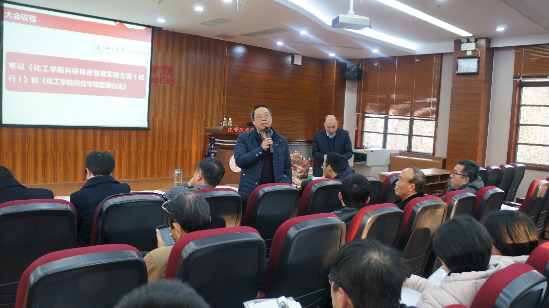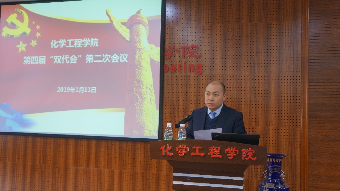 2019年1月11日下午,化学工程学院第四届“双代会”第二次会议在望江校区正行楼(原西二教)313会议室胜利召开。学院正式代表、特邀代表、列席代表等50余人出席了本次会议。本次会议的主题是“深入推进学院管理体制改革、加快学院“双一流”建设步伐”。