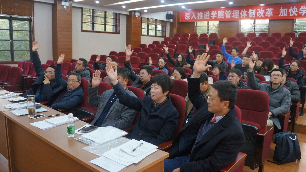 随后,庞国伟书记代表学院向全体与会代表讲解了《学院科研用房管理实施方案(试行)》和《学院岗位考核管理办法》。与会代表对两个制度内容进行了充分的讨论。