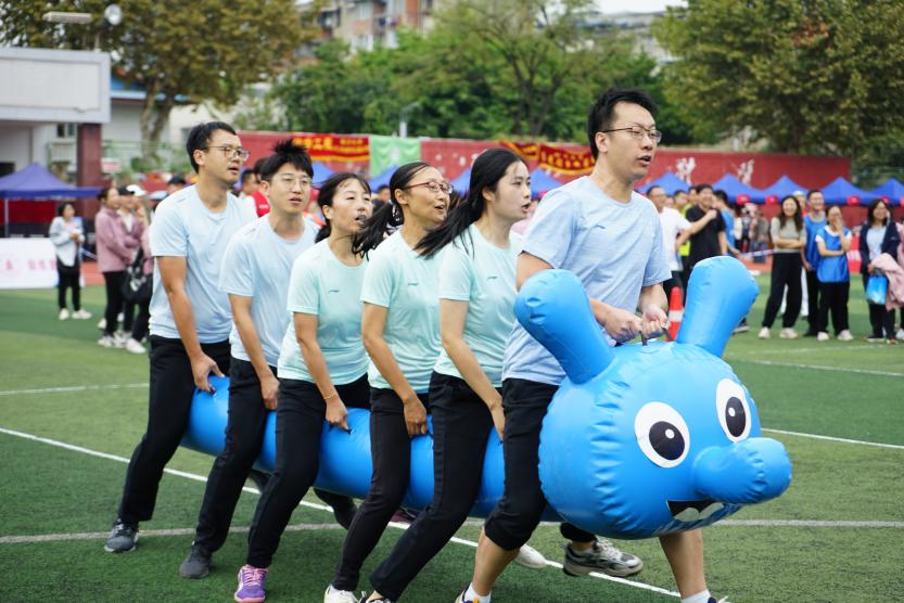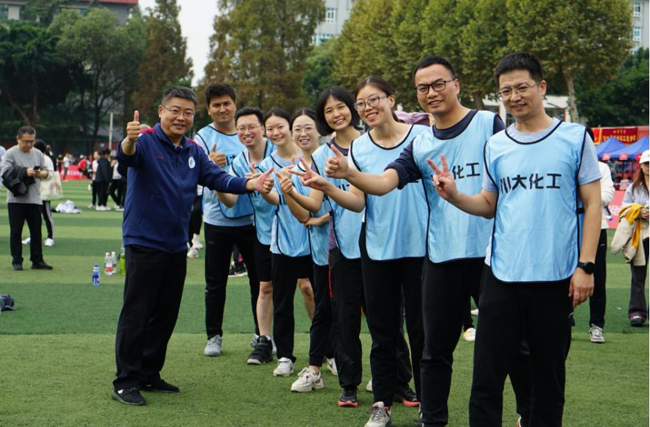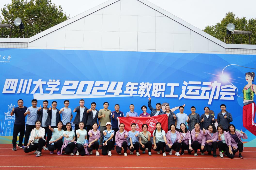 上午九点,四川大学2024年教职工运动会在望江校区东区运动场拉开帷幕。本次教职工运动会比赛项目丰富,融竞技与趣味为一体,包含100米短跑、立定跳远、跳绳、实心球、铅球等个人项目和毛毛虫竞速、抛球入框、绕干射门等集体项目。比赛当天,学院领导来到赛场为运动员们加油打气。学院工会在党政领导班子的支持下,广泛动员教职工积极参与,各系各专业各年龄段的教职工均积极报名。学院党政办、学院工会委员及部分工会小组成员在运动会现场组成后勤服务队,积极主动为参赛队伍呐喊助威,做好后勤服务保障工作。