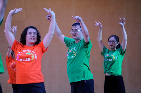 为进一步促进我校全民健身运动的开展,丰富广大教职工业余生活,增强教职工身体素质,校工会于9月份下发了《关于举行四川大学2017年教职工健身操舞比赛的通知》。“四川大学2017年教职工健身操舞比赛”是2017年四川大学秋季运动会的集体项目之一,也是四川大学秋季运动会开幕式的精彩节目之一。为响应党的十九大提出的广泛开展全民健身活动、加快推进体育强国建设的号召,院工会精心做好本次比赛各项筹备工作,广泛动员、积极组织各科室、系别的老师参加。十一长假过后,拥有十多名男女教职工的“美丽化工”代表队正式成立。队伍涵盖了老、中、青三代一线教职工,既有数次参赛经验丰富的老队员,也有充满热情投身比赛的新队友,大家都表现出了昂扬的精神风貌,时刻准备着为化工争光。
