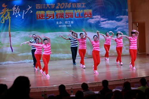 为进一步促进我校全民健身运动的开展,丰富广大教职工业余生活,增强教职工身体素质,校工会于9月份下发了《关于举行四川大学2014年教职工健身操舞比赛的通知》。“四川大学2014年教职工健身操舞比赛”是2014年四川大学秋季运动会的集体项目之一,也是四川大学秋季运动会开幕式的精彩节目之一。院工会每年都把该项赛事作为丰富教工生活、增强教工体质、团结广大教工的重要契机,积极组织各科室、系别的老师参加。十一长假过后,拥有十多名男女教职工的“美丽化工”代表队正式成立。队伍涵盖了老、中、青三代一线教职工,既有数次参赛经验丰富的老队员,也有充满热情投身比赛的新队友,大家都表现出了昂扬的精神风貌,时刻准备着为化工而战。