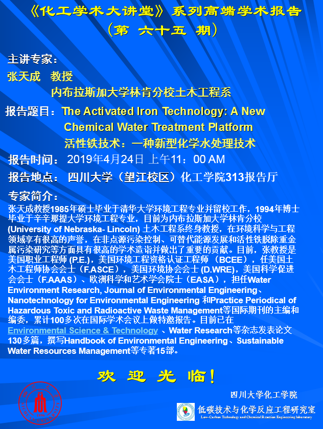 “化工学术大讲堂”系列高端学术报告学术报告(第六十五期)