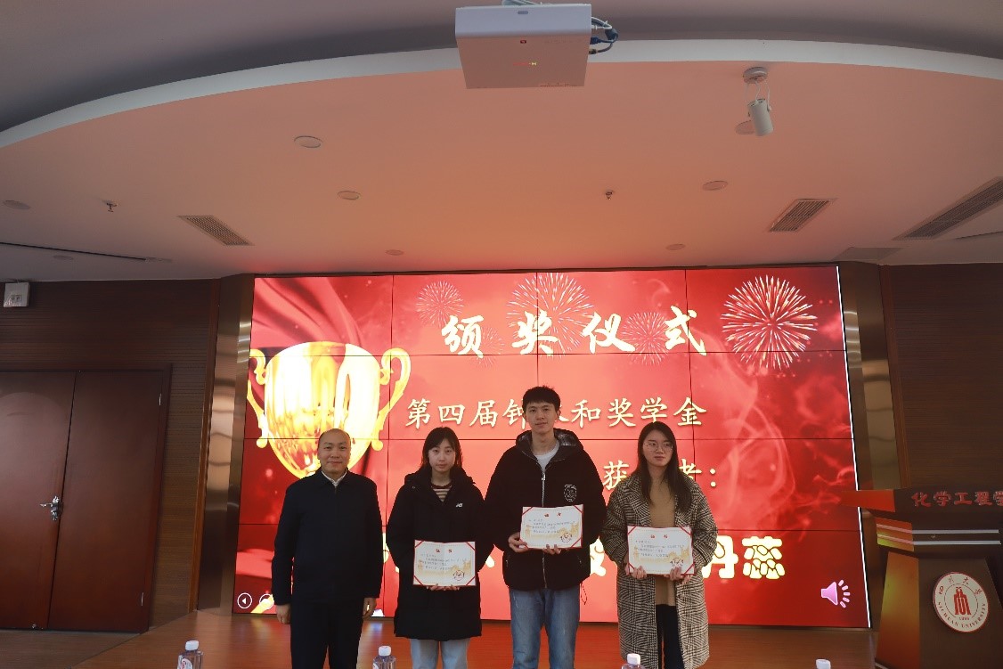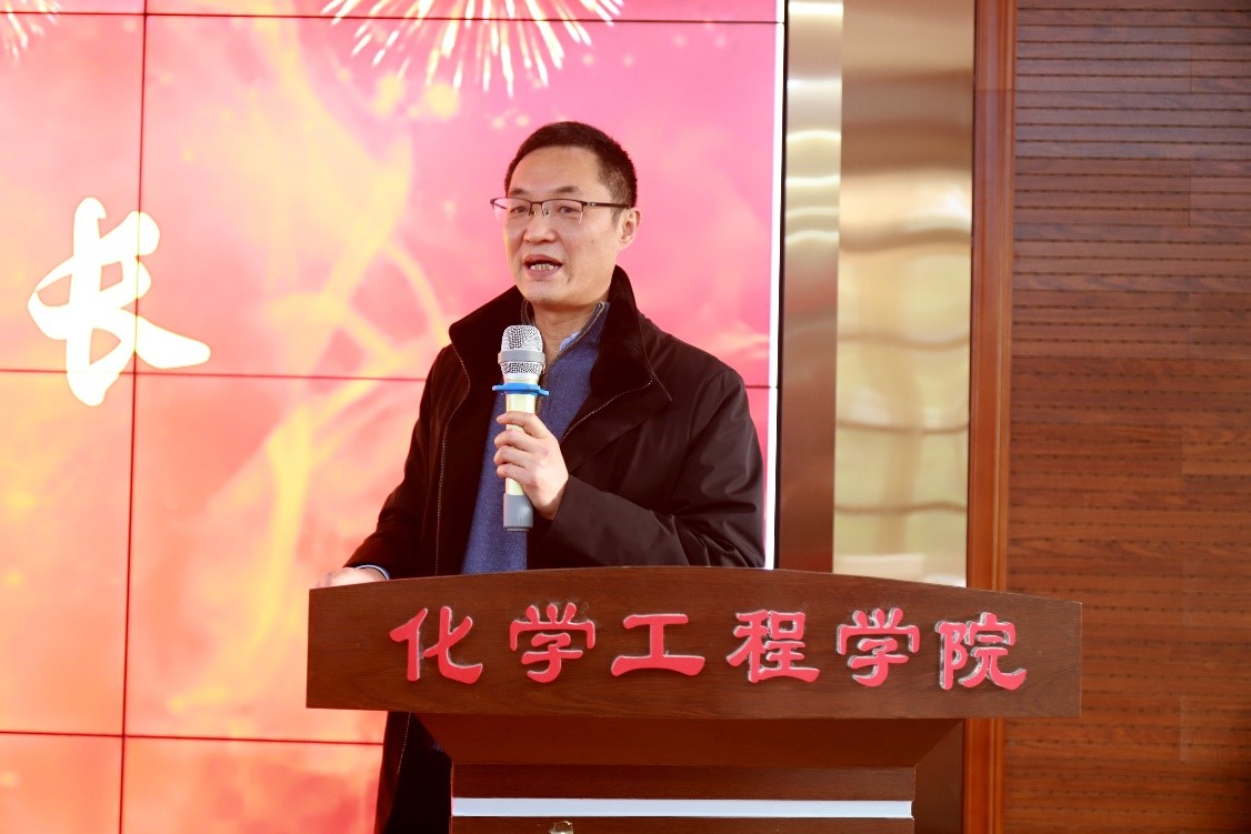 化学工程学院院长赵长生教授致辞。他介绍了钟本和教授及团队6位教授在2018年学校122年校庆之际捐资122万元设立奖学金的初衷,向关心支持学校化工学科发展的老一辈磷化工科学家表示衷心的感谢和崇高的敬意,并希望此次受表彰的学生能够传承弘扬老一辈磷化工专家面向国家需求、攻坚克难的科学家精神,继续在科研道路上发光发热,作出自己的贡献。