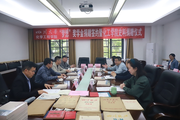 4月13日,“梦想”奖学金捐赠签约暨化工史料捐赠仪式在望江校区化学工程学院235会议室顺利举行。捐赠人马利校友,马利校友就读时学院党委副书记、现成人继续教育学院副院长张必涛教授,马利校友毕业论文指导教师、学院退休教师印永祥教授,马利校友就读时辅导员老师、四川大学教育基金会副秘书长杨彬,化工学院党委书记李天友、党委副书记姜利寒和学院相关教师及学生代表等参加了捐赠仪式。仪式由学院党委副书记兼纪委书记李德富主持。