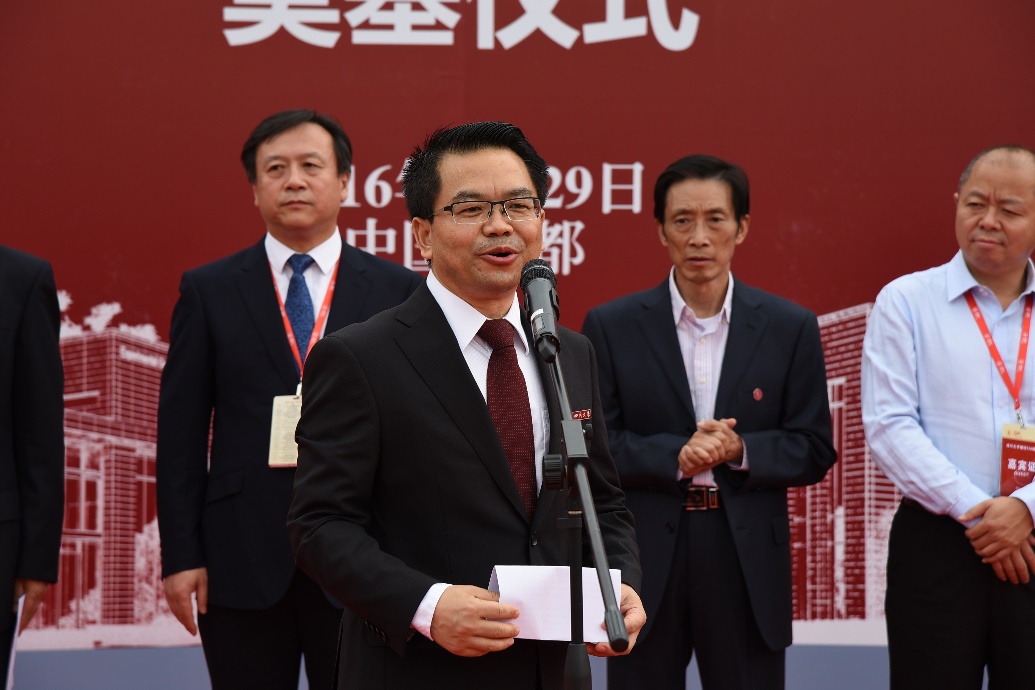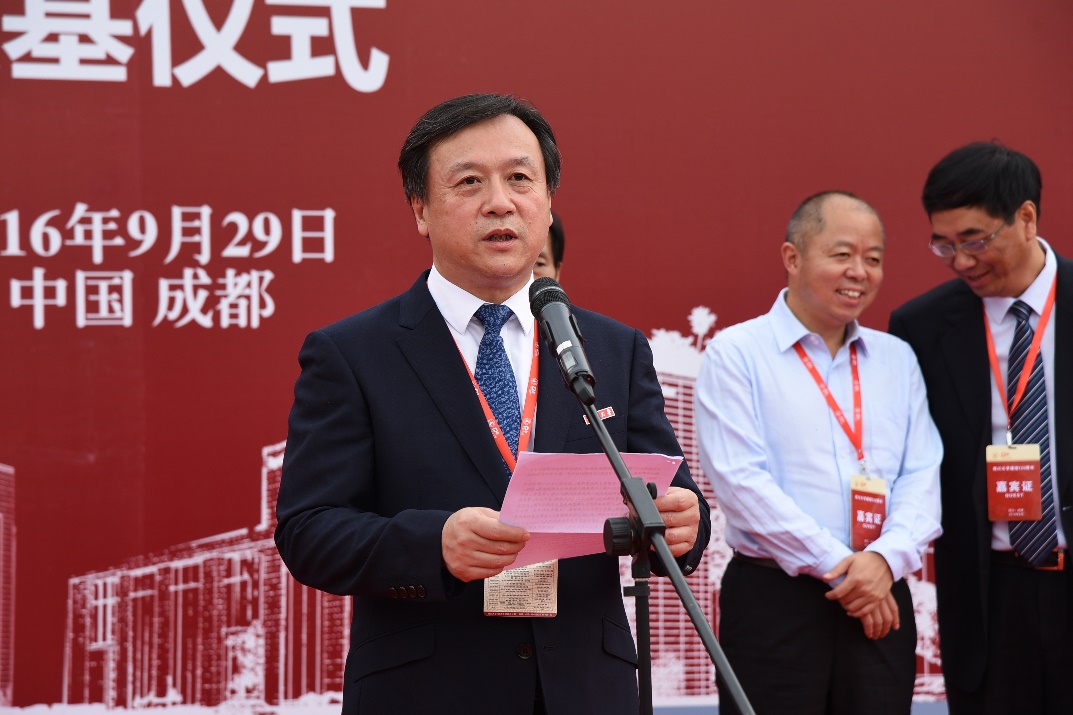 四川大学副校长许唯临教授代表学校致辞。许副校长首先代表四川大学向参加此次奠基仪式的嘉宾、校友表示欢迎,向捐赠建设卓越工程师教学训练中心的川大77级杰出校友、重庆圣华曦药业股份有限公司董事长姜维平先生致以最诚挚的感谢!随后,详细介绍了自2014年校方接受来自姜维平校友的1000万元捐赠后展开的各项工作,并表示学校有关部门已经做好了充分的准备,也有信心和决心做好相关配套工作,使姜维平校友播下的感恩种子能够结出丰硕的成果。最后,他希望化工学院能够借助卓越工程师教学训练中心的一流平台,发挥四川大学百年名校优势,以强化本科学生工程实践教育与训练为目标,将中心的工程训练优势充分发挥,致力建成国内规模最大、且最先进的高水平工程教育与训练平台,为国家培养更多的优秀青年人才。