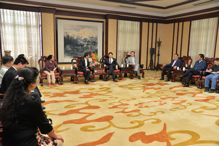 川大82届化工专业校友、重庆圣华曦药业股份有限公司董事长、重庆汇智药物研究院有限公司院长姜维平日前向母校捐赠1000万元并设立“四川大学校友奖教金”。4月27日上午,四川大学校长谢和平院士在望江校区明德楼贵宾厅会见了姜维平先生。常务副校长李虹教授、副校长步宏教授、校党委副书记李向成教授,以及校办、宣传部、教务处、外联办及化学工程学院相关部门负责人参加了会见。