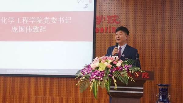 化学工程学院党委书记庞国伟代表学院党政致辞。他首先对各位返校归来的校友致以诚挚的欢迎并一如既往关心和支持学院的发展建设表示感谢。随后,庞国伟书记从1977年开始讲起,带领全体校友一起回顾了学院40年的发展历程。在谈到学院今天的成绩的时候,庞书记说到,今天的化学工程学院,在学科发展、科学研究、人才培养和校友工作等方面取得了长足的进步与成就。2017年,学校入选教育部“双一流”建设36所A类大学,“化学与绿色化工”学科(群)入选学校重点建设的四大类12个一流学科(群),“绿色磷化工前沿技术学科”和“新能源与低碳技术”成为学校超前部署的聚焦未来新领域的学科(群)。教育部第四轮学科评估结果中,“化学工程与技术”学科进入国家A-类学科排名。2018“软科世界一流学科排名”正式发布,化学工程学科成功入围世界50强。最后,他说到,校友是一个学校软实力的体现,化学工程学院是每个校友永不毕业的“家”,希望校友们一如既往地关注和支持母校发展,宣传母校的办学成就和发展蓝图,为母校的腾飞汇聚力量,共铸辉煌。