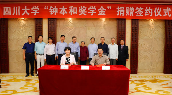 在喜迎学校122年校庆之际,学校杰出教授钟本和及其团队共6位教授捐资现金122万元,设立“钟本和奖学金”,用于奖励化工学院磷化工领域品学兼优的研究生。9月25日,学校在望江校区明德楼贵宾厅举行“钟本和奖学金”捐赠签约仪式,校长李言荣,钟本和杰出教授及其团队主要成员,以及学校有关部处、学院负责人和师生代表参加签约仪式。仪式由校党委副书记敬静主持。
