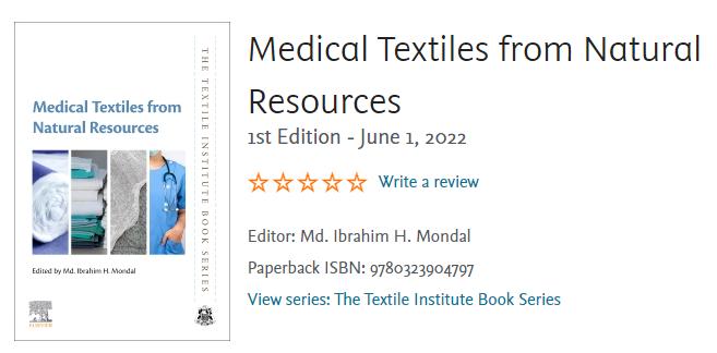 Kaifeng Du*,Liangzhi Qiao. Medical Textiles from Natural Resources. Biotextile-based adsorbents for medical applications (Part 1.4). Elsevier, Paperback ISBN: 9780323904797.