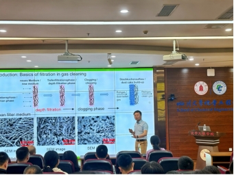 张茜博士长期从事颗粒技术研究,在过滤理论方面具有深厚的学术造诣。报告中,他主要介绍了过滤式气固分离过程的最新理论研究成果及其应用进展。经典理论将过滤过程分为深度过滤和表面过滤两个阶段,张茜博士提出了一种全新的整体性表述方法,通过引入“一维空间”模型,将深度过滤和表面过滤统一为过滤层持续性结构变化的外在表现形式。他进一步介绍了基于该理论开发的全新模型及其计算结果,展示了如何通过模型解析颗粒物在过滤层中的时空分布规律。这一研究不仅为过滤式气固分离过程提供了新的理论支持,还为工业应用开辟了新的可能性。最后,张茜博士简要介绍了德国伍珀塔尔大学机械工程与安全工程学院的研究平台和成果。
