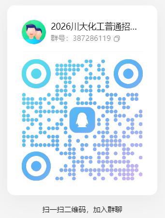 QQ群:387286119(2026川大化工普通招考博士研究生报名群),请资格审查通过的同学尽快扫码加入我院普通招考博士研究生报名群,需以“姓名+硕士学校+身份证号后六位”格式验证加入。