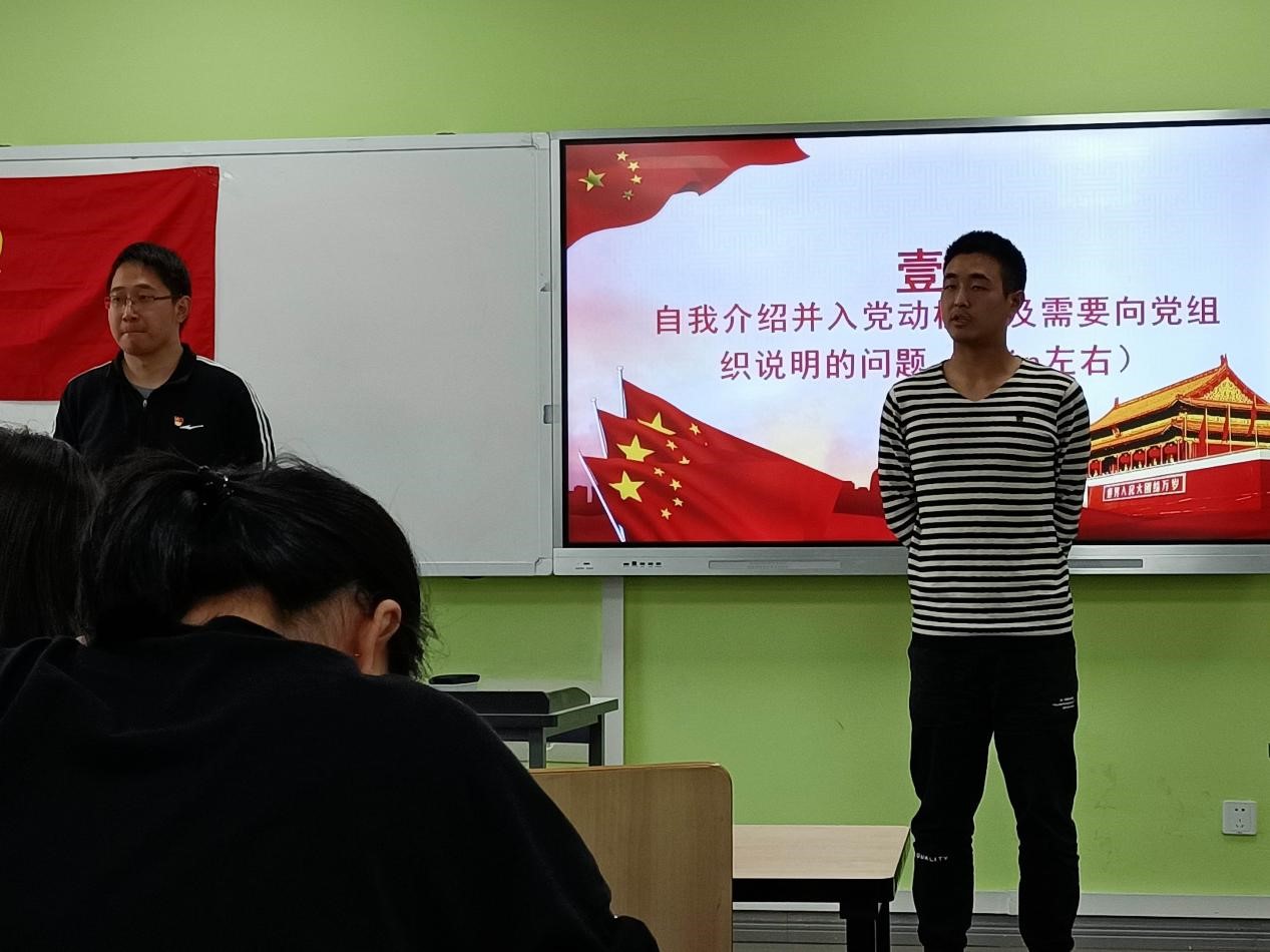 经过党支部严格考察和培养,有二十三名入党积极分子列为发展对象。支部严格按照党员发展程序,首先由二十三位同志依次上台做自我介绍并讲述入党动机以及需要向党组织说明的问题,随后入党介绍人分别介绍发展对象的现实表现,到会其他成员发表意见。党支部大会经过讨论和无记名投票表决后一致同意谭开元、王浩全等二十三位同志的入党申请。最后集体宣誓,二十三位同学光荣地成为中国共产党预备党员。
