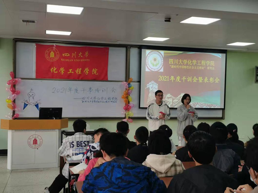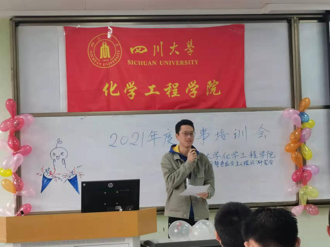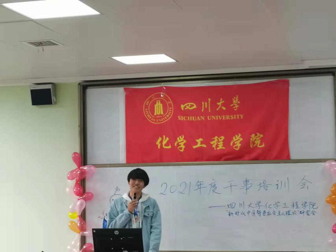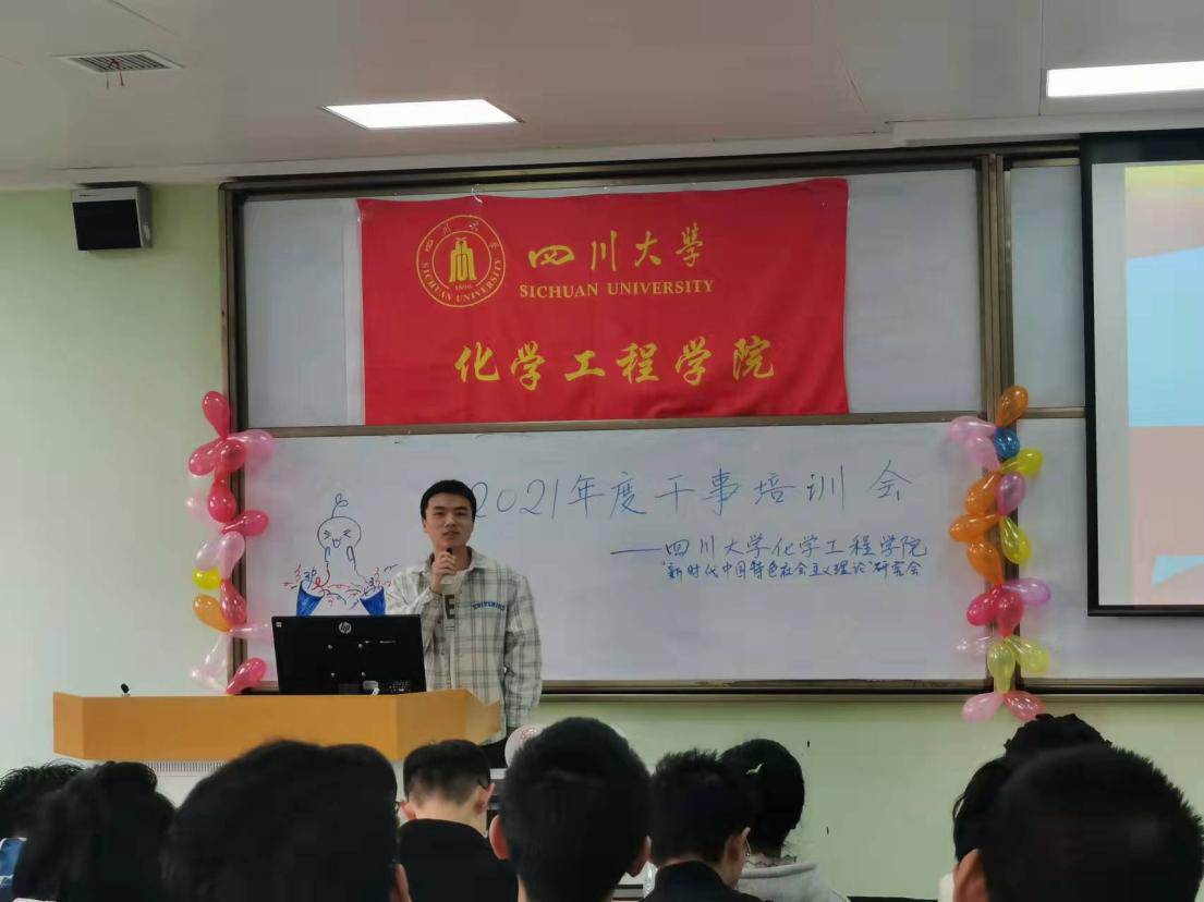 2021年10月31日星期日上午9:00,四川大学化学工程学院“新时代中国特色社会主义理论”研究会2021年度干事培训会于江安校区一教B座302室顺利举行,与会嘉宾有“新中会”指导老师雷金凤老师,现任会长及各部门部长,参与成员为化学工程学院“新中会”2021届全体干事及上一年度受表彰人员。本次干训会旨在让新任干事对今后的工作有更加深入的了解,继续发挥优良传统,在工作上能百尺竿头,更进一步。