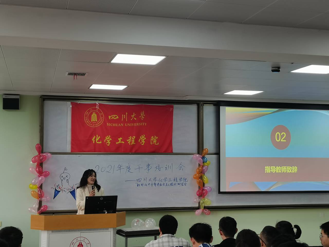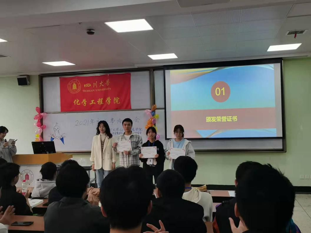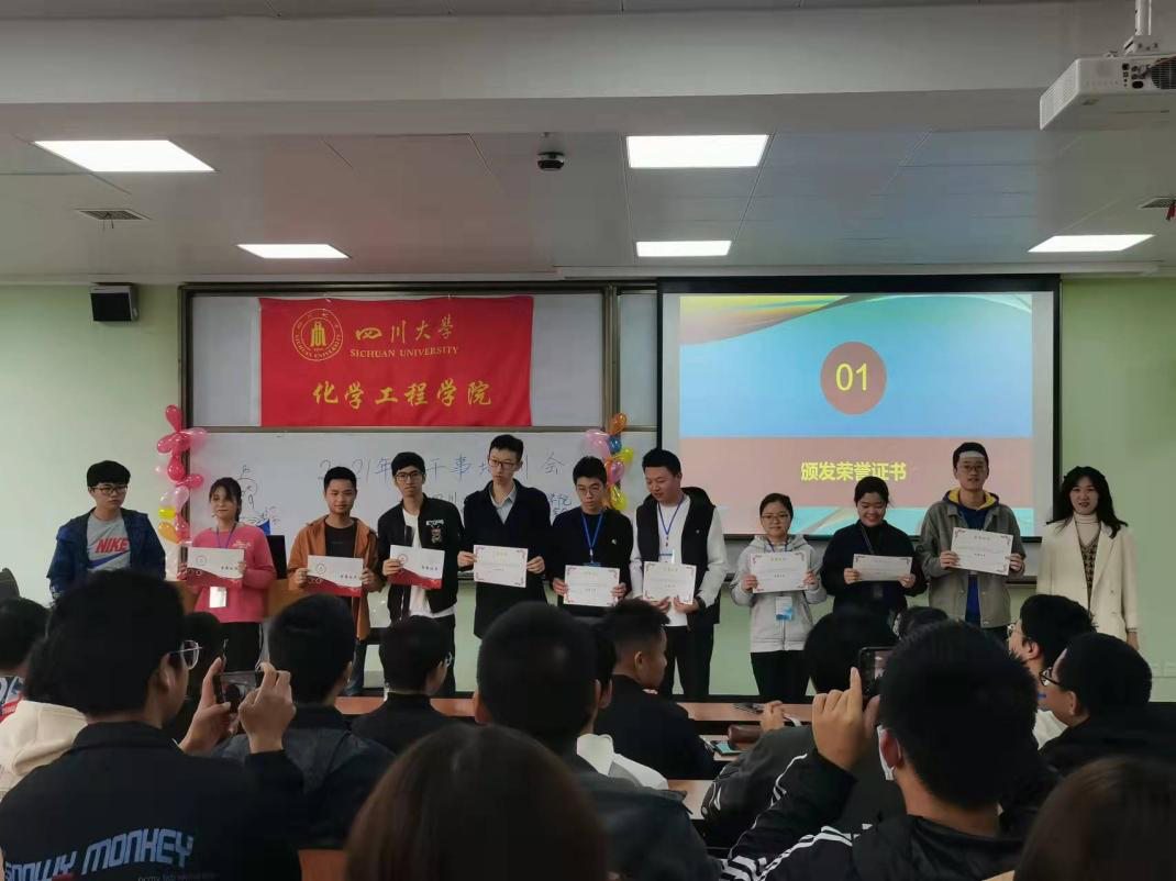 2021年10月31日星期日上午9:00,四川大学化学工程学院“新时代中国特色社会主义理论”研究会2021年度干事培训会于江安校区一教B座302室顺利举行,与会嘉宾有“新中会”指导老师雷金凤老师,现任会长及各部门部长,参与成员为化学工程学院“新中会”2021届全体干事及上一年度受表彰人员。本次干训会旨在让新任干事对今后的工作有更加深入的了解,继续发挥优良传统,在工作上能百尺竿头,更进一步。