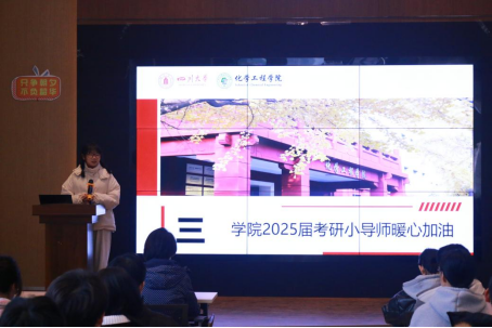 2024年12月5日下午,为缓解考研学子的备考压力,增强他们的考试信心,化学工程学院在江安校区西园22舍礼堂举办了“温暖相伴 研途灿烂”——2025届化工学子考研行前动员大会,出席本次活动的嘉宾有学院党委副书记姜利寒、2021级辅导员李珍珍和付率以及2025届考研小导师。活动由李珍珍老师主持。