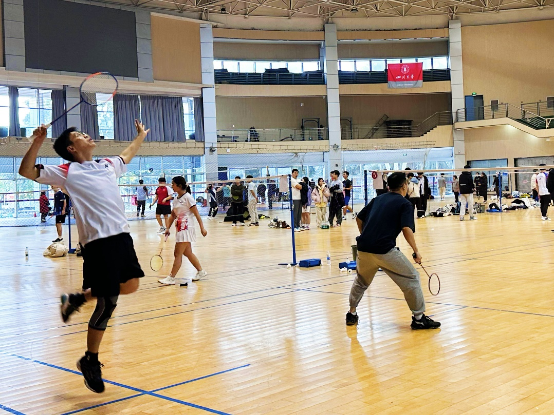 为响应国家全民健身号召,鼓励全校学子积极锻炼,丰富校园文化生活,四川大学化学工程学院研分会联合法学院研分会和四川大学羽毛球协会,于2025年3月8日在四川大学江安校区体育馆成功举办了“羽林争霸”32院羽毛球友谊赛。本次赛事由男单、男双、混双、女单、女双五个项目组成,吸引了来自32个学院的代表队,共计超300人参与。