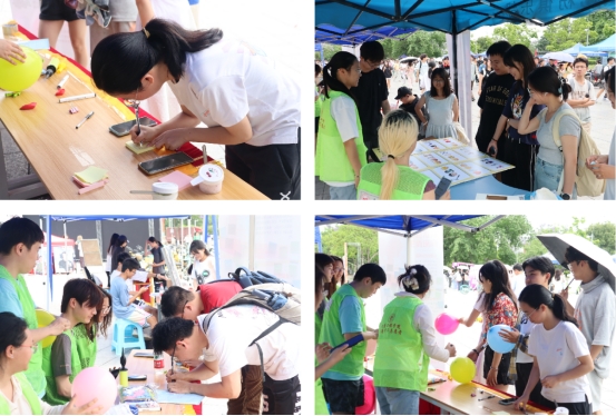 活动现场氛围热烈,“心晴家园”心理知识展区、“快乐驿站”游戏体验区、“心语心愿”心理咨询区各展区有序开展,吸引众多师生参与。