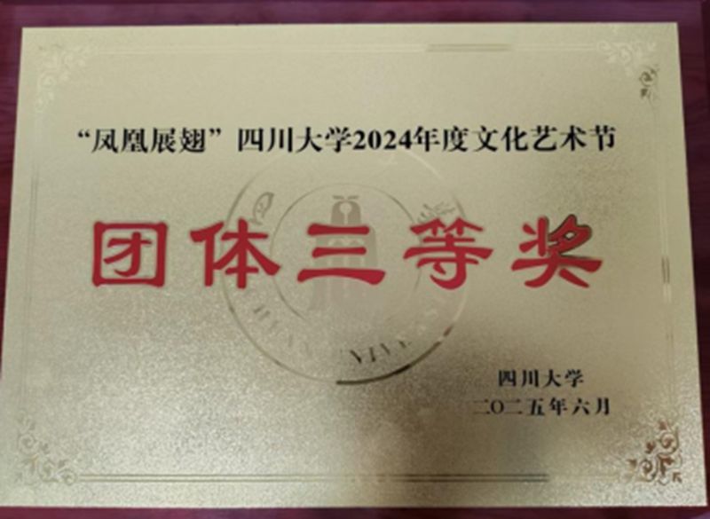 近日,2025年“凤鸣川大”校园十佳歌手大赛决赛暨“凤凰展翅”四川大学文化艺术节颁奖典礼于四川大学望江校区体育馆举办,化学工程学院最终取得了团体三等奖的好成绩。
